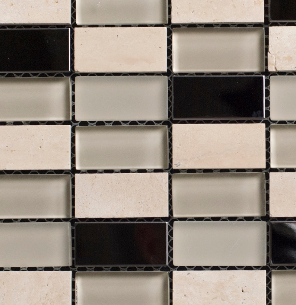 Achieve timeless elegance with the Creamy Glass Stainless Steel and Ivory Travertine Rectangles Glass Mosaic Tile, a refined backsplash for kitchens and bathrooms. The rectangular format creates flowing visual lines, while the trio of creamy glass, brushed stainless steel, and warm ivory travertine establishes a sophisticated palette that feels both luxurious and inviting. The combination of smooth glass, metallic accents, and textured natural stone adds dimensional interest without overwhelming your space. Premium materials work in harmony to deliver exceptional durability in moisture-prone environments, resisting water damage and staining while maintaining their individual character. Perfect for homeowners seeking a backsplash that blends contemporary materials with classic warmth, this mosaic tile collection transforms your walls into a gallery-worthy feature that celebrates refined taste and enduring style.