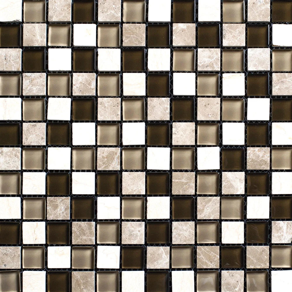 Frosty Brown Glass and Emperador Marble Squares Glass Mosaic Tile - MosaicBros.com