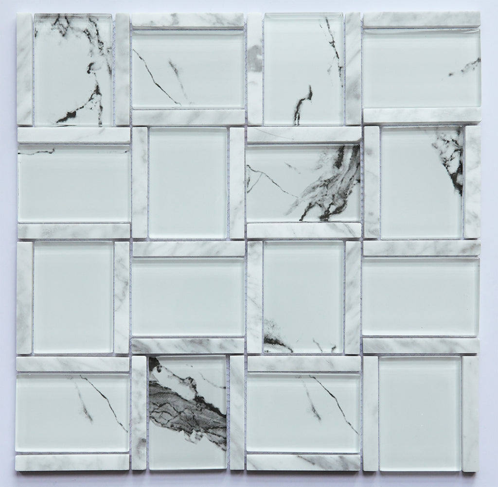 Glass and Carrara Marble Pattern Glass Mosaic Tile